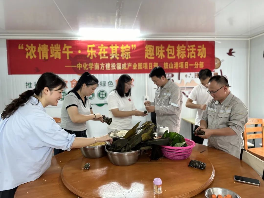 6月8日,福成產(chǎn)業(yè)園項(xiàng)目部與鐵山港項(xiàng)目一分部聯(lián)合開展“濃情端午·樂在其粽”主題系列活動(dòng)。通過趣味包粽子、趣味運(yùn)動(dòng)會(huì)、端午節(jié)文化和安全知識(shí)競(jìng)賽等方式,讓項(xiàng)目員工感受傳統(tǒng)文化魅力,體驗(yàn)濃濃節(jié)日氛圍,共同歡度端午佳節(jié)